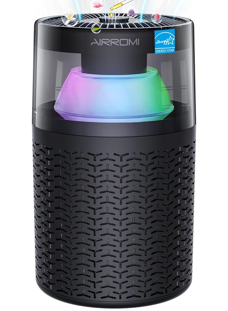 AIRROMI Air Purifiers for Home Bedroom Up to 765 Ft²,with Activated Carbon Filter,Aromatherapy,RGB nightlight,Quiet 360° intake Air Cleaner for Pet Hair,Pet Dander,…
