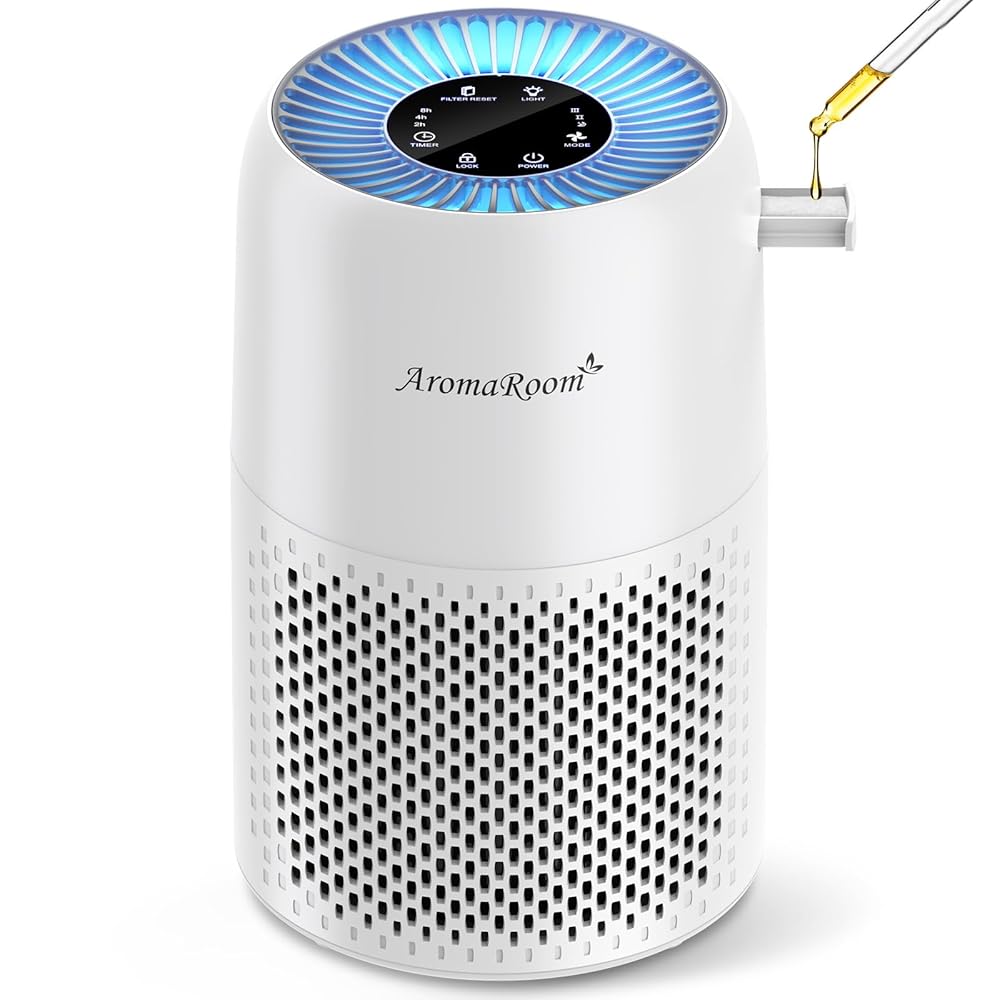 AromaRoom Air Purifiers for Bedroom, H13 HEPA Air Purifier for Home with Fragrance Sponge, Portable Air Cleaner for Smoke, Allergies, Pet Hair Dander, Odor, Dust, RGB Night…