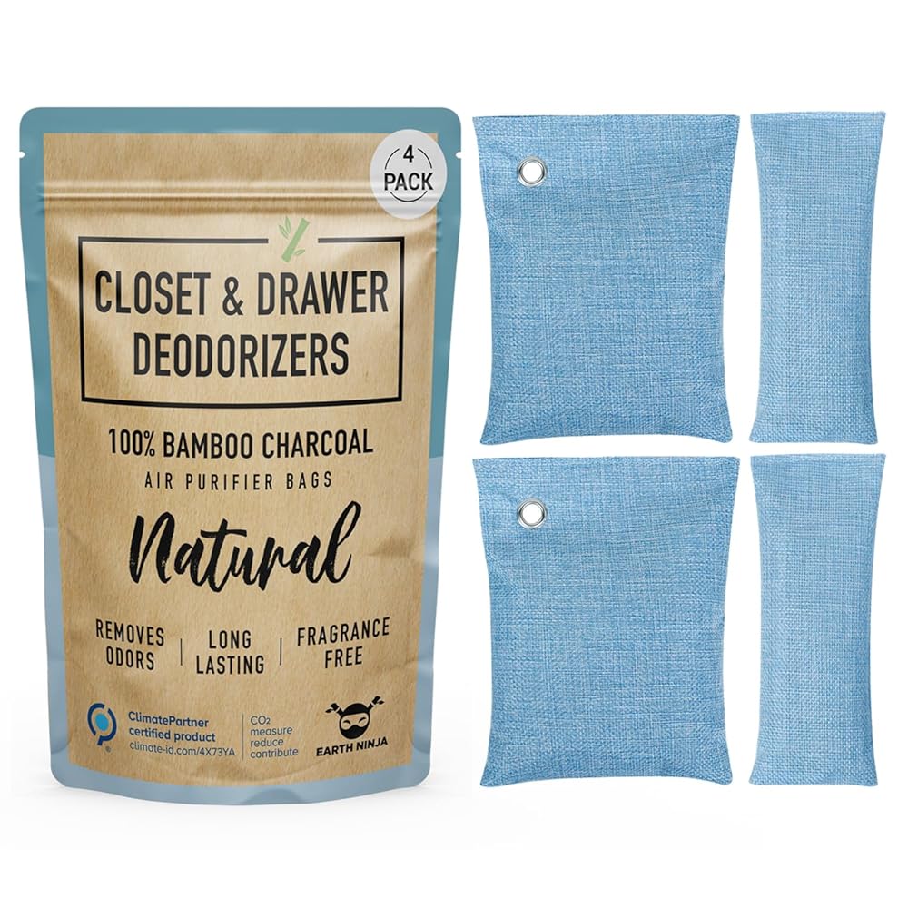 - 4 pack of odor eliminating charcoal bags for musty-smelling closets and drawers