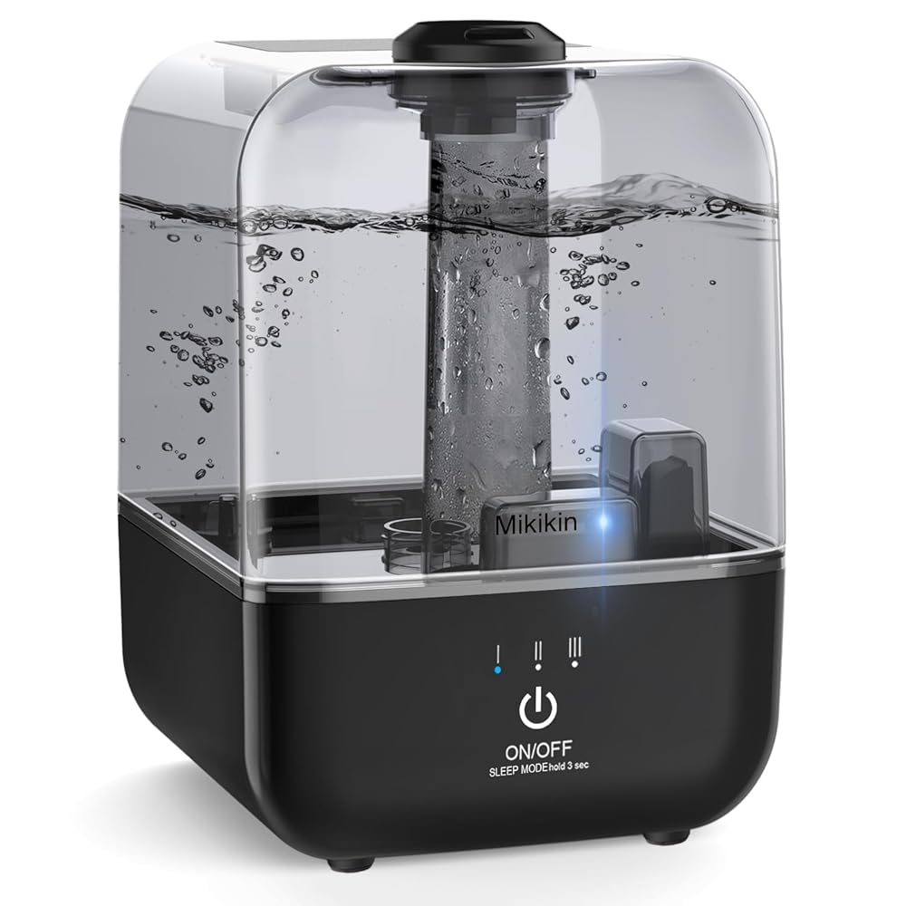 - 【WHISPER-QUIET DEEP SLEEP MODE】The air humidifier works almost no noise which offers maximum relaxation during sleeping or working. Sensitive touch buttons help you easily change operating modes. Simply press it for 3s to turn off the nightlight. Enjoy all night mist and rest easily. Perfect for your baby and a disturbance-free sleep at night.