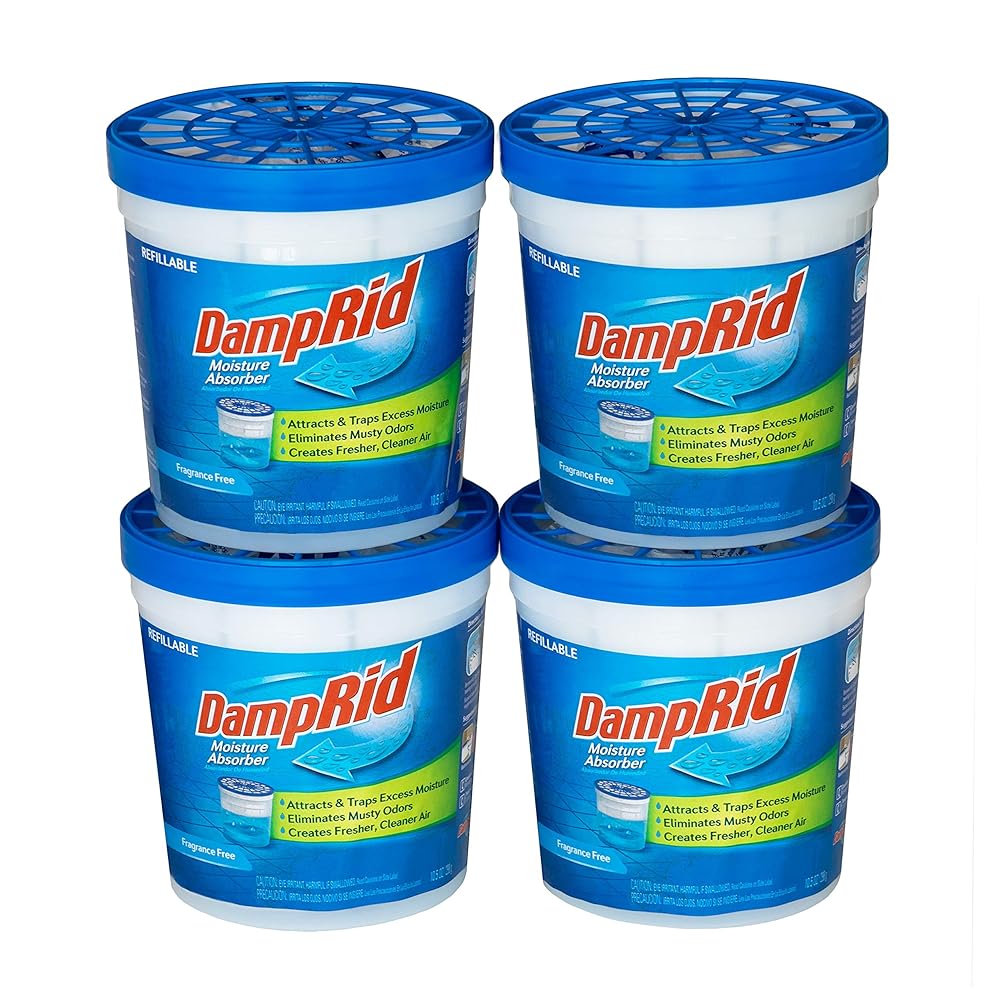 DampRid Refillable Moisture Absorber, 10.5 oz. Cups, 4 Pack, Fragrance Free, Traps Moisture for Fresher, Cleaner Air, No Electricity Required, Lasts Up To 60 Days