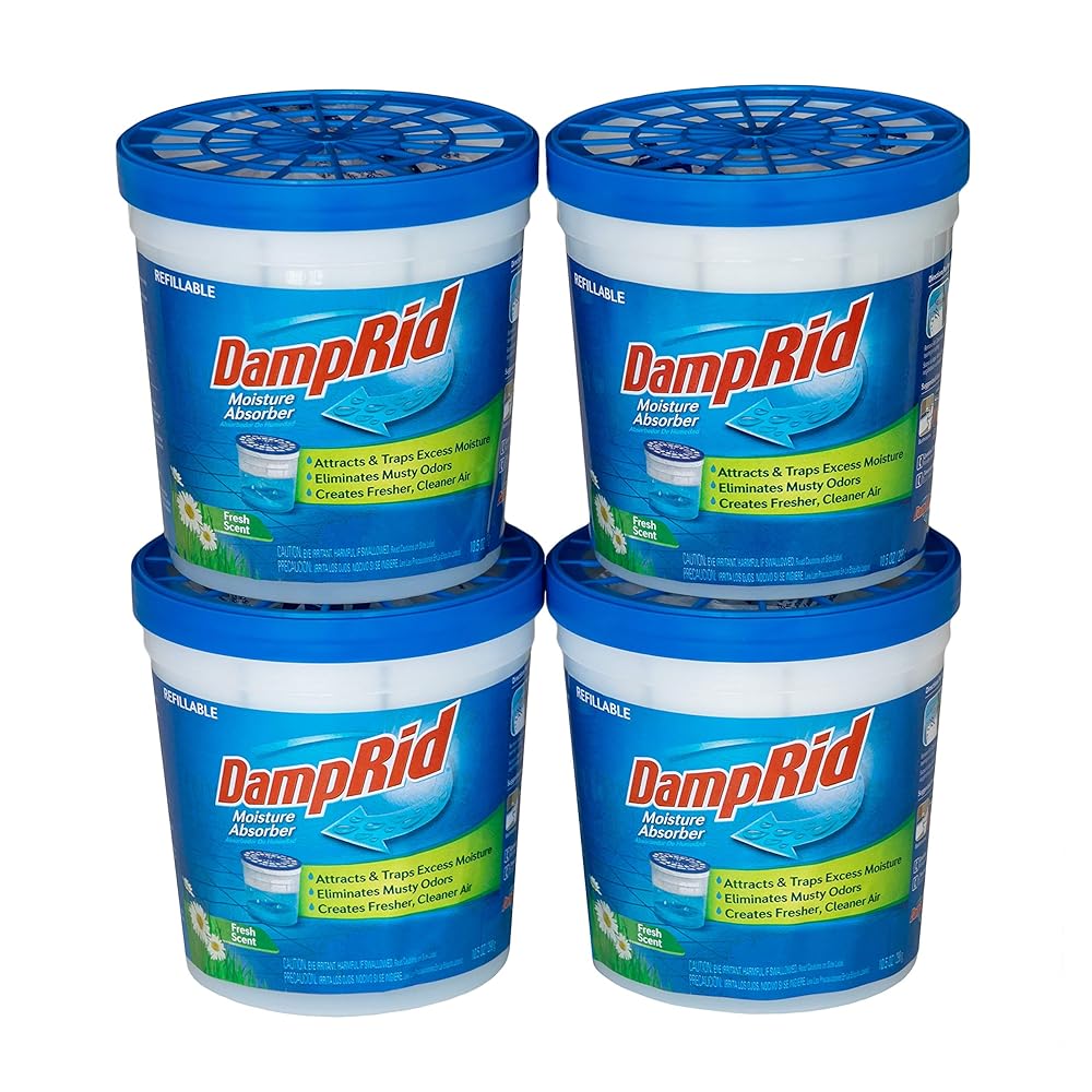 DampRid Refillable Moisture Absorber, 10.5 oz. Cups, 4 Pack, Fresh Scent, Traps Moisture for Fresher, Cleaner Air, No Electricity Required, Lasts Up To 60 Days