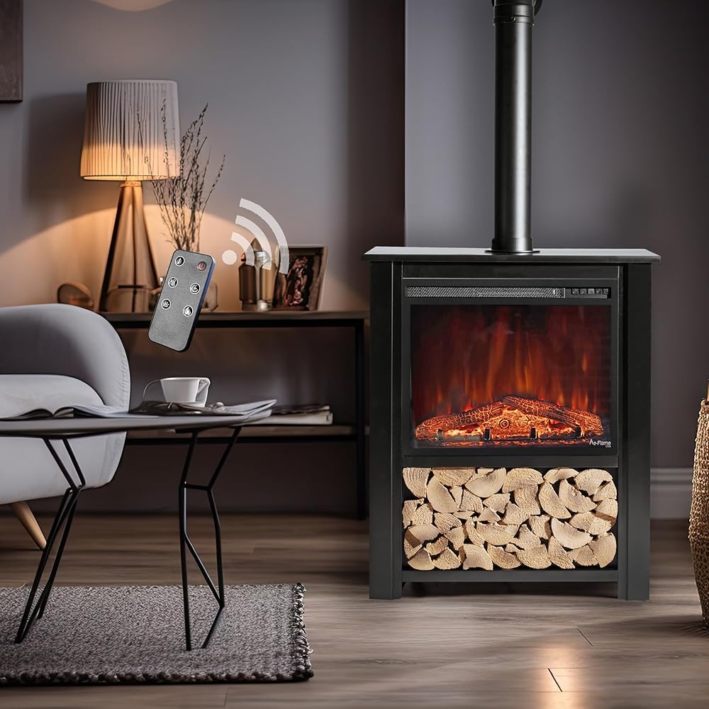 8 reviews for Innsbruck Electric LED Fireplace Stove – Décor Chimney Flue and Wood – 32″ Wide x 38″ Tall – Soot Black Finish – New 2024
