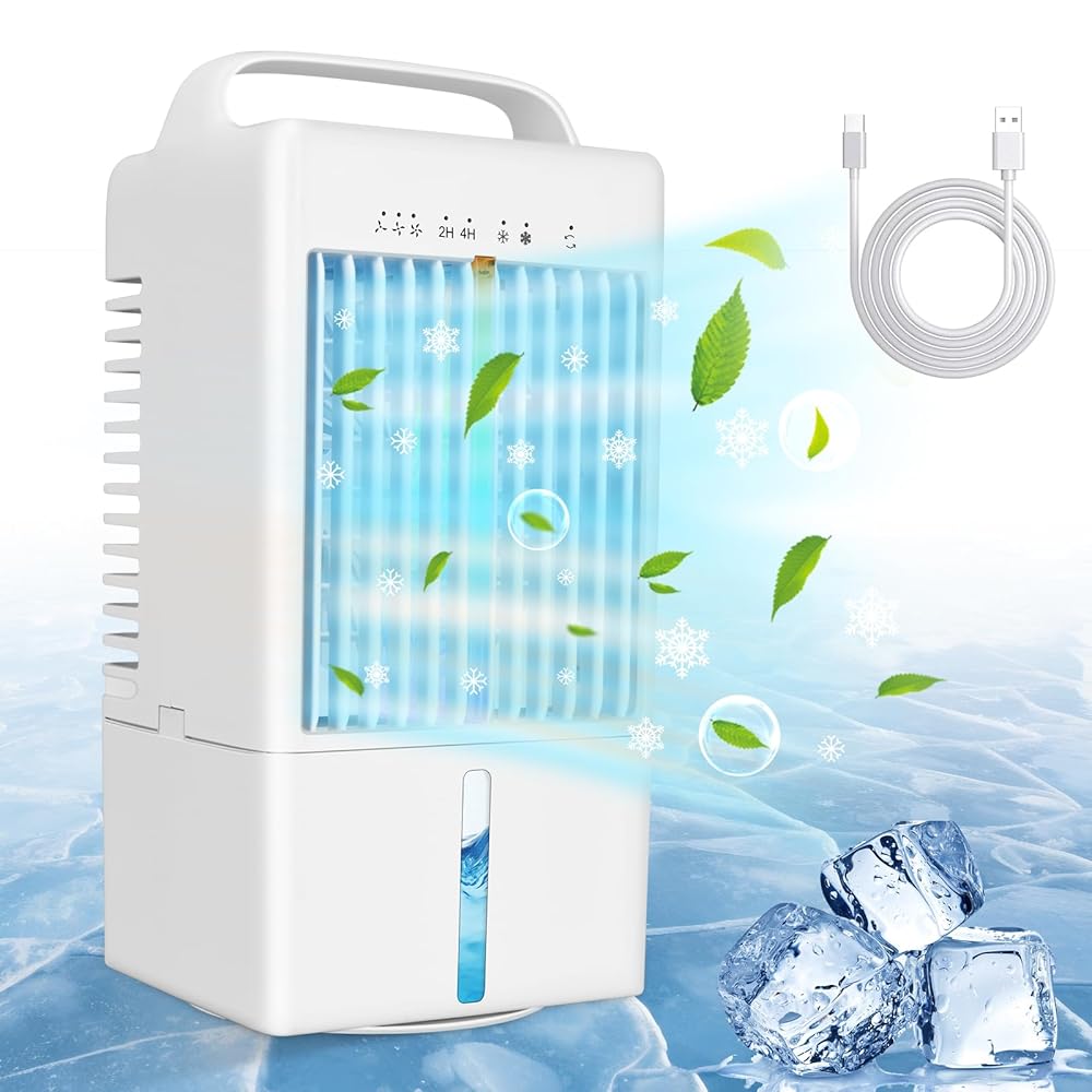 8 reviews for Portable Air Conditioners Oscillating Fan, Desk Mini Air Evaporative Cooler with Upgraded 3 Cool Mist & Speeds and Timer, Small AC Desktop Personal Air Conditioner for Office…