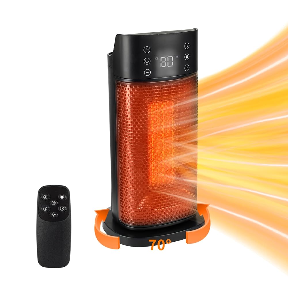 - 𝐕𝐞𝐫𝐬𝐚𝐭𝐢𝐥𝐞 𝐇𝐞𝐚𝐭𝐢𝐧𝐠 𝐌𝐨𝐝𝐞𝐬 𝐚𝐧𝐝 𝐖𝐢𝐝𝐞 𝐎𝐬𝐜𝐢𝐥𝐥𝐚𝐭𝐢𝐨𝐧:Customize your comfort with three heating modes and a 70° oscillation feature that ensures even heat distribution across the room; suitable as a bedroom heater, tower heater, or heater and fan combo; it provides tailored warmth for any environment; control all settings easily with the included remote; offering convenience from a distance