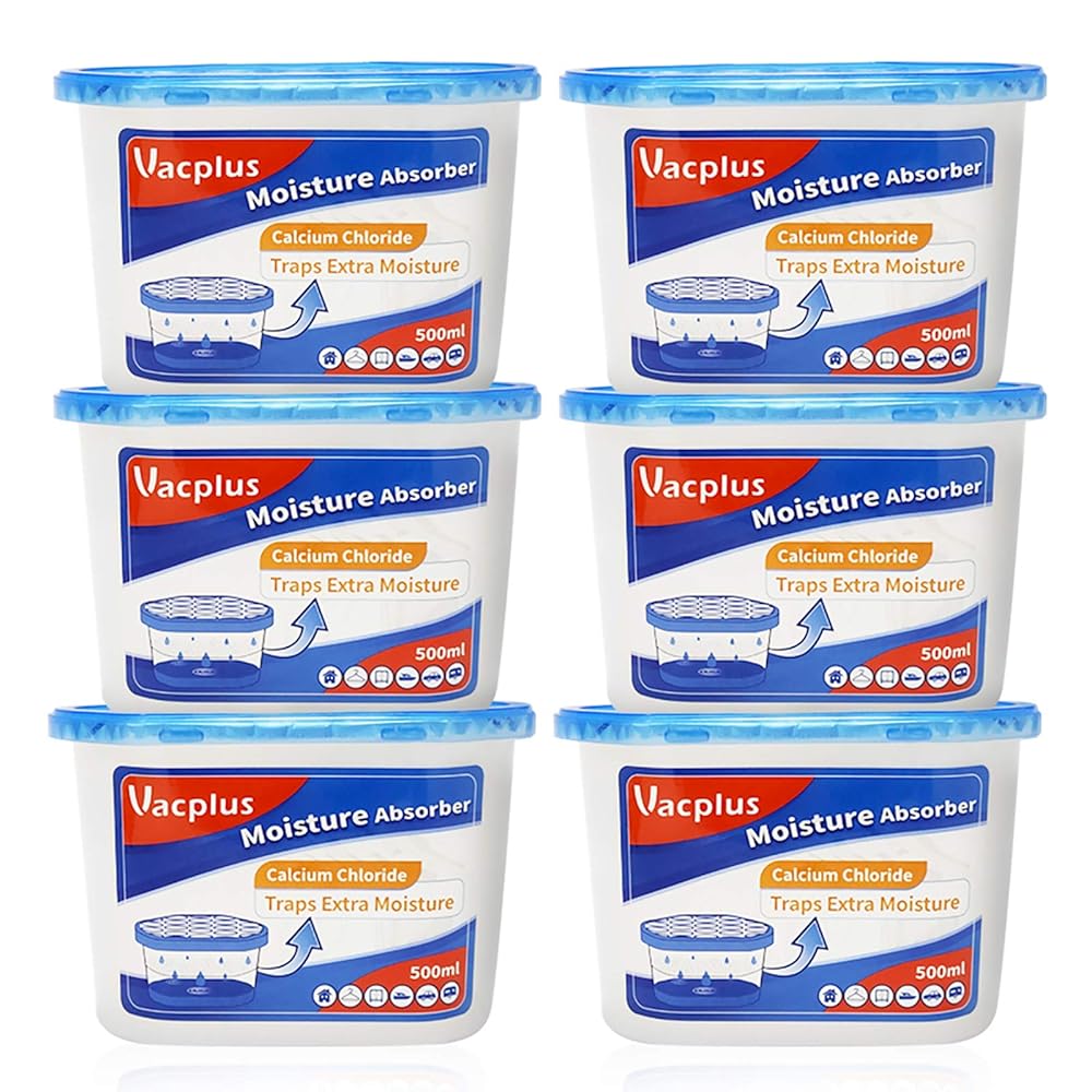 - Efficient Dehumidification: Traps excess moisture quickly. Vacplus moisture absorbers use spherical calcium chloride to enlarge the absorbing area. The large collecting capacity of this moisture remover keeps a long time dry.