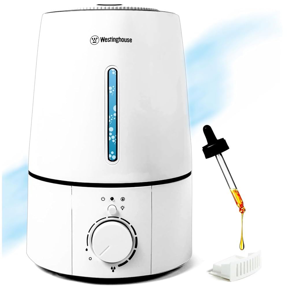 Westinghouse Cool Mist Ultrasonic Humidifier for Bedrooms, 3 Liter Capacity with LED Night Light and Low Water Alarm, Humidifier with Essential Oil Diffuser