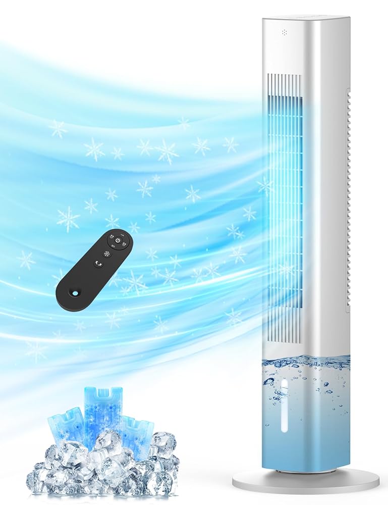 Windowless Portable Air Conditioners, 35″ Evaporative Air Cooler w/1.2L Water Tank & 3 Ice Packs, 7H Timer & 60° Oscillation, 3-IN-1 Swamp Cooler Air Conditioner for Room Bedroom